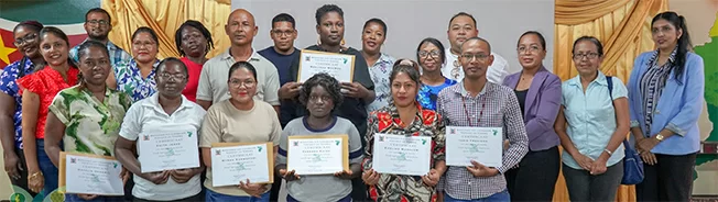 In observance of World Food Day, celebrated globally on October 16, the Ministry of Agriculture, Livestock, and Fisheries (LVV) organized a three-day training program for farmers in the Para district. The event, held from October 13 to 15, focused on Good Agricultural Practices (GAP), a methodology aimed at promoting sustainable, safe, and efficient food production. The sessions took place in the multifunctional hall of the Para center and were led by LVV experts. Twelve farmers with at least five years of experience participated in the training, which emphasized improving production processes, food safety, and environmentally friendly cultivation methods. During the closing ceremony, LVV Deputy Director Maitrie Jagroep highlighted the importance of collaboration and knowledge sharing in strengthening the agricultural sector. ‘We are using this opportunity to exchange ideas and work together toward better food and a brighter future. Sustainable agriculture and certification are key concepts in this endeavor,’ Jagroep stated. The training underscores the ministry’s commitment to professionalizing and enhancing capacity within the agricultural sector. This initiative aligns with the goals of World Food Day, which this year is celebrated under the theme ‘Better Food for a Better Future.’