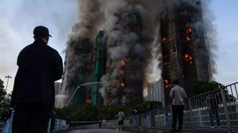 A devastating fire broke out on Wednesday in the Wang Fuk Court residential estate in Tai Po, Hong Kong, claiming the lives of at least 13 people and injuring 15 others. The blaze, which began on bamboo scaffolding surrounding several high-rise apartment blocks, quickly spread, engulfing multiple buildings and sending thick plumes of smoke and flames into the sky. Witnesses reported hearing loud cracking sounds, likely from the burning bamboo, as the fire raged uncontrollably. By nightfall, the flames cast an eerie orange glow over the area, with firefighters struggling to contain the inferno. Authorities declared a five-alarm fire, the highest emergency level, as the situation worsened. Reports indicated that some residents were trapped inside the buildings, though rescue efforts were hampered by the intensity of the blaze. A 37-year-old firefighter lost his life while battling the flames, succumbing to severe burns. The government established temporary shelters for displaced residents and urged the public to avoid the area. This tragic incident has reignited concerns about fire safety in Hong Kong, particularly regarding the use of bamboo scaffolding, which has been linked to similar fires in recent months. While the cause of the fire remains under investigation, the event underscores the challenges of ensuring safety in one of the world’s most densely populated cities.