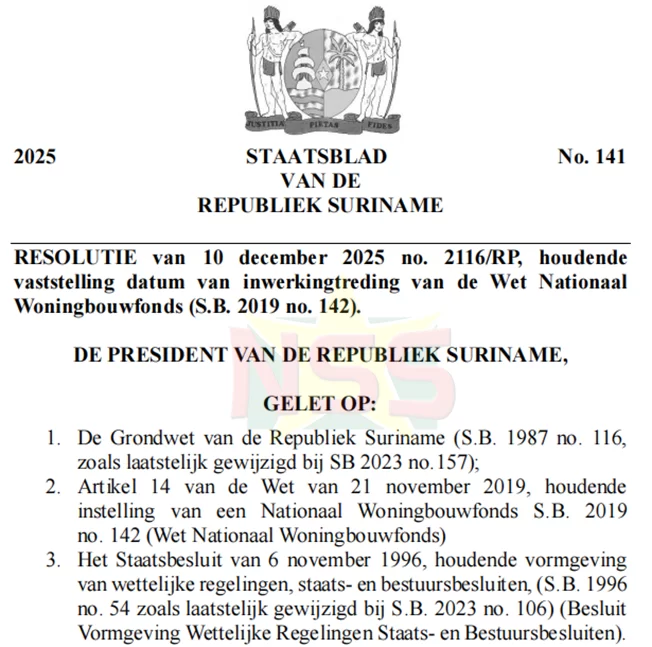 The fund represents the government’s central financial mechanism for affordable housing construction, renovation programs, and sustainable housing projects. Although the legislation was originally passed by the National Assembly on November 21, 2019, its implementation had been pending until now. This delay-free activation finally provides Suriname with a consolidated and sustainable financing framework for its housing sector.