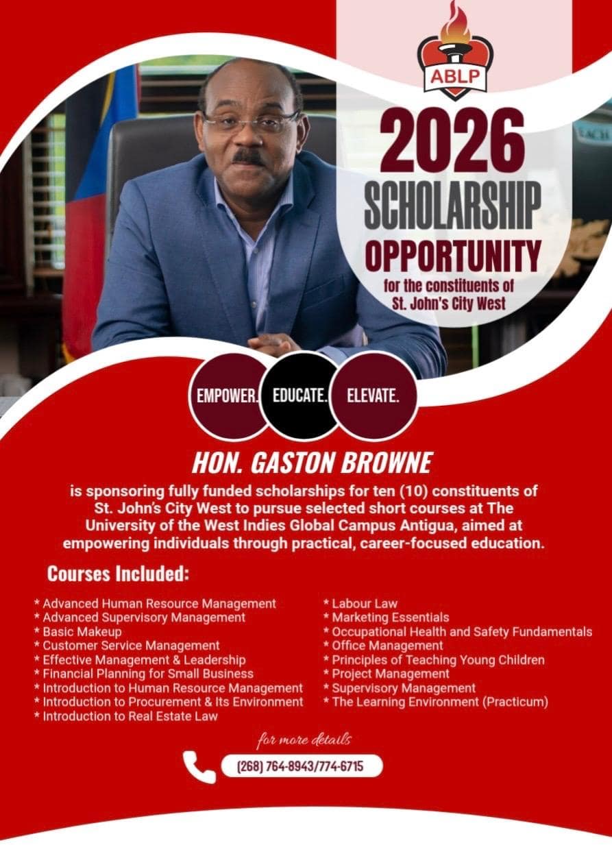 In a significant educational initiative, Prime Minister Gaston Browne has announced the sponsorship of ten fully-funded scholarships exclusively for residents of St. John’s City West. The program will enable selected candidates to pursue internationally recognized short courses at the University of the West Indies Global Campus in 2026.