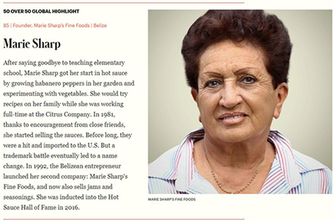 Marie Sharp Earns Global 50 Over 50 Honor