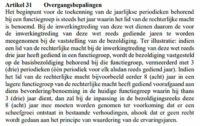 Article 31 further compounds this structure by granting annual 5% increments based not on years served in current position, but on total tenure within the judicial system. For the current Prosecutor General—with six years in role but over forty years in judicial service—this translates to exponential salary growth rather than measured experience recognition.