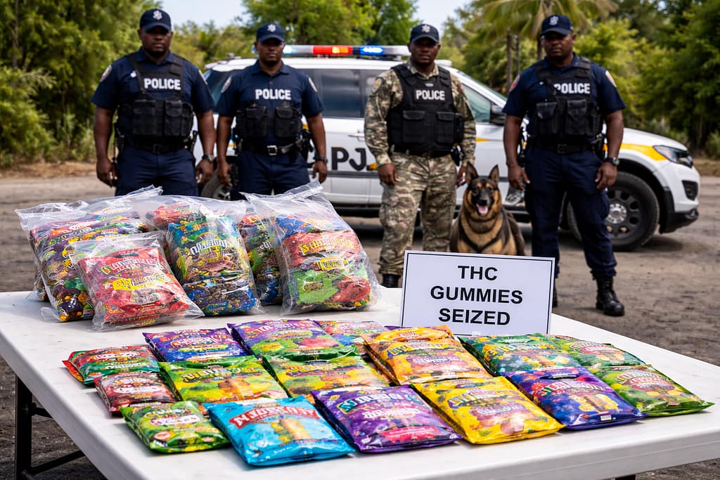 In a coordinated crackdown on controlled substances, the Royal Police Force of Antigua and Barbuda executed two successful operations on Friday, February 21, 2026, resulting in significant seizures of THC-infused products. The first operation, conducted around 2:00 p.m. along Sir George Walter Highway, involved a multi-unit task force comprising the Narcotics Division, K-9 Unit, and Customs Enforcement Unit. Authorities confiscated forty-five packages of THC-laced gummies from a targeted premises, subsequently detaining one individual for interrogation at Police Headquarters. Simultaneously, a parallel operation on Old Parham Road yielded an additional eleven packages of THC by-products. Both investigations remain active as law enforcement continues to pursue all leads. Delta-9-tetrahydrocannabinol (THC), the principal psychoactive component in cannabis, induces mind-altering effects including euphoria, sensory distortion, memory impairment, and anxiety. Health experts caution that edible THC products present unique risks due to delayed onset of effects, potentially leading to dangerous overconsumption and adverse reactions such as tachycardia, dizziness, and impaired cognitive function. The Royal Police Force reaffirmed that unauthorized possession, distribution, and consumption of controlled substances violate national laws, emphasizing their commitment to enforcing drug regulations.