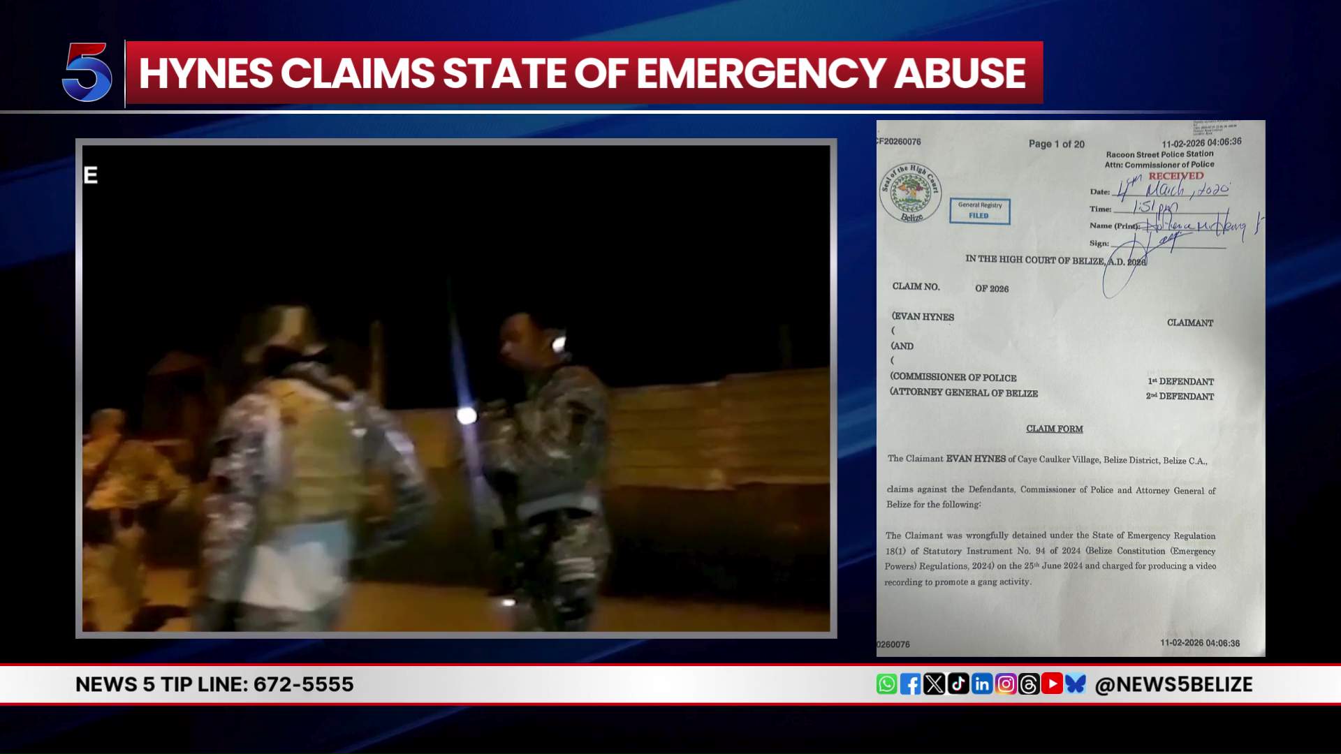 The incident began on June 25, 2024, when Hynes was apprehended by police on allegations of producing a video that allegedly promoted gang activity. Critics note the alleged incident predated the official declaration of the State of Emergency by approximately two weeks. Following his arrest, Hynes was formally charged, systematically denied bail, and remanded to the Belize Central Prison.