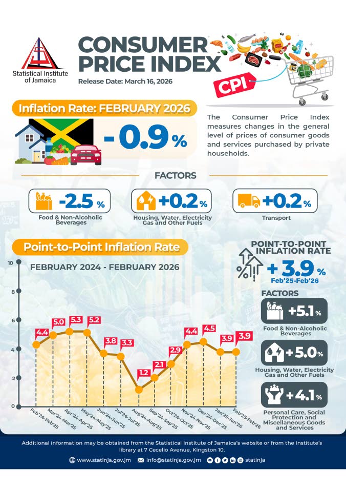 Jamaica experienced a significant downturn in inflation during February, with official statistics revealing a 0.9% monthly contraction in the All-Jamaica Consumer Price Index. This substantial decline was predominantly propelled by a dramatic 11.3% collapse in vegetable prices alongside reductions in tubers, plantains, and pulses, culminating in a 2.5% decrease within the food and non-alcoholic beverages category. Superficially, these figures position annual inflation at 3.9%—comfortably within the Bank of Jamaica’s target corridor of 4-6%—suggesting economic stability.