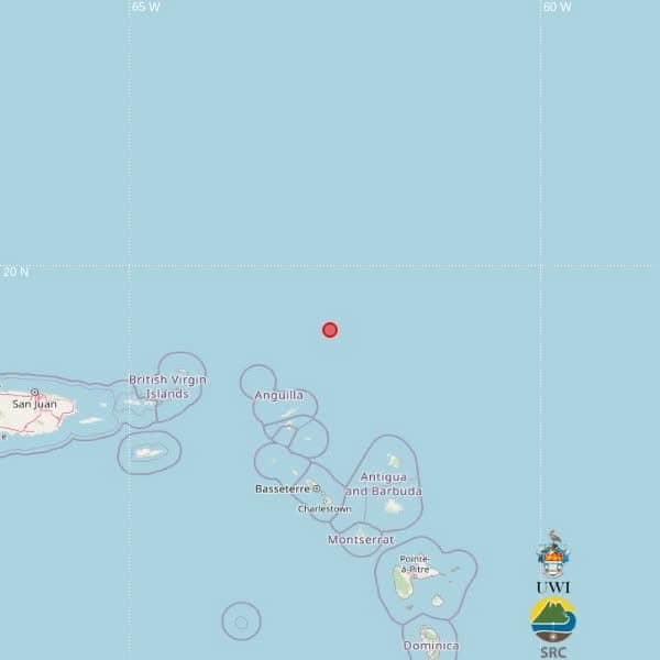 A minor seismic event measuring 3.8 on the Richter scale was detected north of Antigua and Barbuda late Friday evening, as confirmed by the University of the West Indies Seismic Research Centre. The tremor occurred at 8:50 p.m. local time (00:50 UTC) on March 20th, with its epicenter positioned approximately 247 kilometers north-northwest of St. John’s, Antigua.
