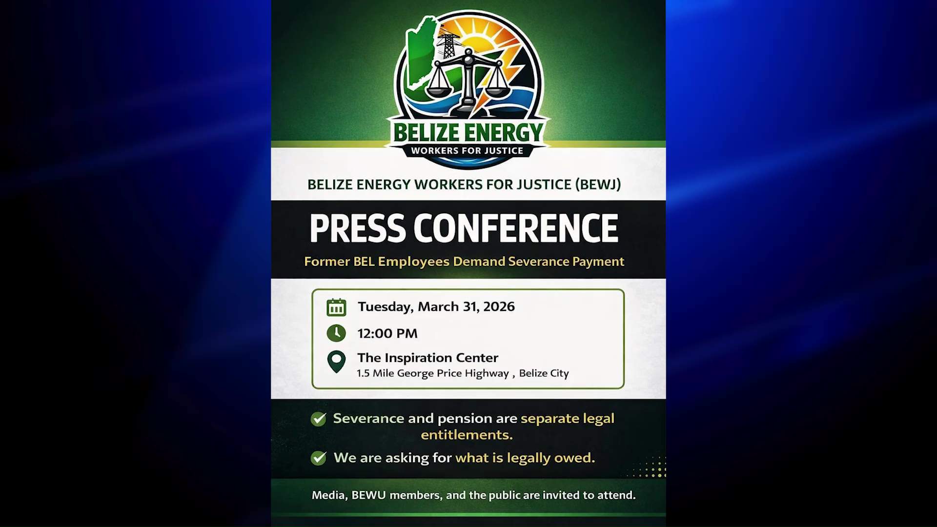 Most recently, former employees of Belize Electricity Limited have mobilized under the newly formed banner of Belize Energy Workers for Justice. The group has announced plans for a Tuesday press conference where they intend to formally demand what they characterize as legally mandated compensation.