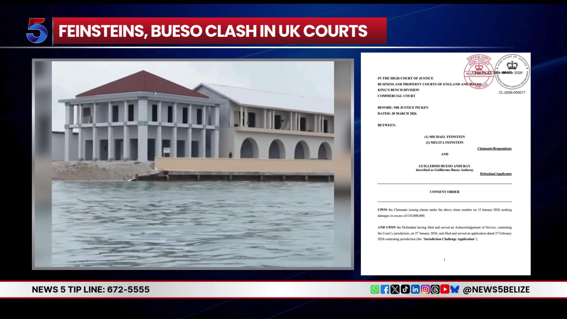 A high-stakes legal conflict over the mothballed Stake Bank cruise port development project has moved forward in London’s courts, even as uncertainty about the project’s future continues to roil stakeholders in Belize. At the heart of the dispute are founding developers Michael and Melita Feinstein, who have launched a legal claim against prominent Honduran businessman Guillermo Bueso Anduray. The Feinsteins allege that Bueso leveraged his substantial influence over Belize’s Atlantic Bank to illegally seize control of the multimillion-dollar infrastructure project and force the original founders out of the venture. The claimed damages in the case exceed 10 million British pounds, equivalent to roughly 27 million Belize dollars. To date, the court has not yet begun to examine the substantive merits of the founding pair’s allegations. Instead, the proceedings have been held up by a foundational jurisdictional challenge: Bueso’s legal team has argued that the English court has no authority to adjudicate the dispute at all, pausing any review of the core claims. A consent order issued by the court in March confirms that both parties have agreed to extend existing filing deadlines in the case. All formal legal submissions are scheduled to be completed by September, with a public hearing on the jurisdiction question expected to take place before the end of 2026. This London-based proceeding is the latest chapter in a years-long conflict that has already been fought through Belize’s national court system and multiple international arbitration panels. For the foreseeable future, the fate of one of Belize’s most controversial planned development projects remains unresolved. As the legal fight unfolds overseas, no final ruling on the project’s ownership or future is on the immediate horizon, leaving the stalled initiative in continued limbo.